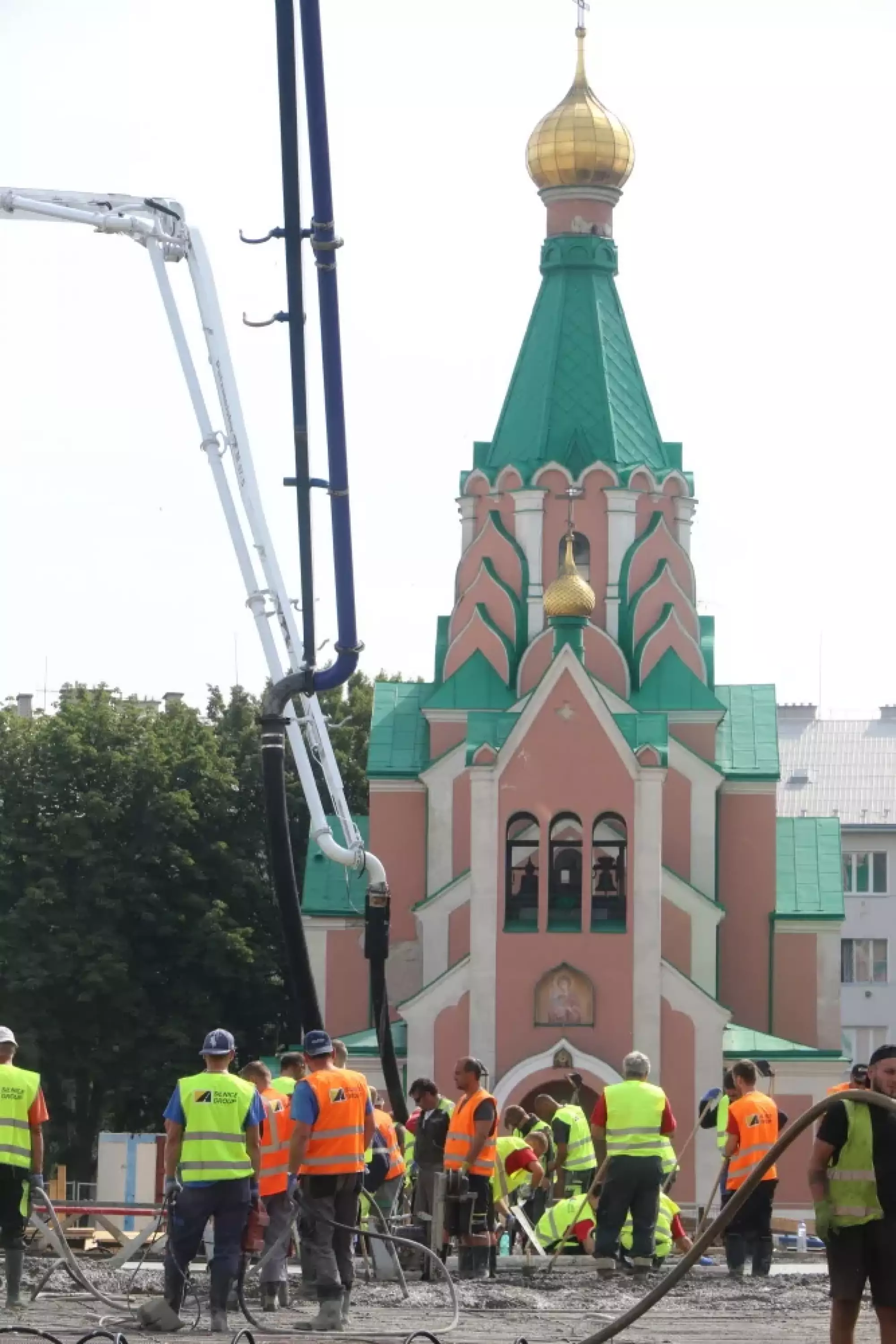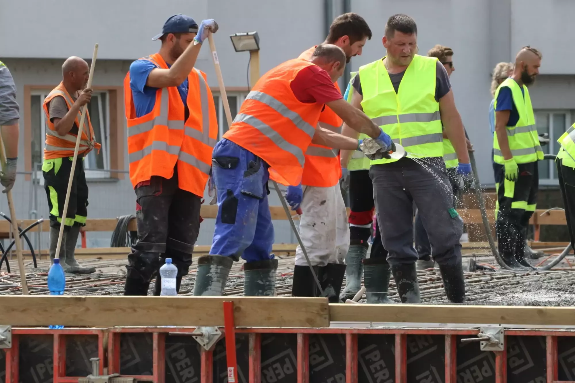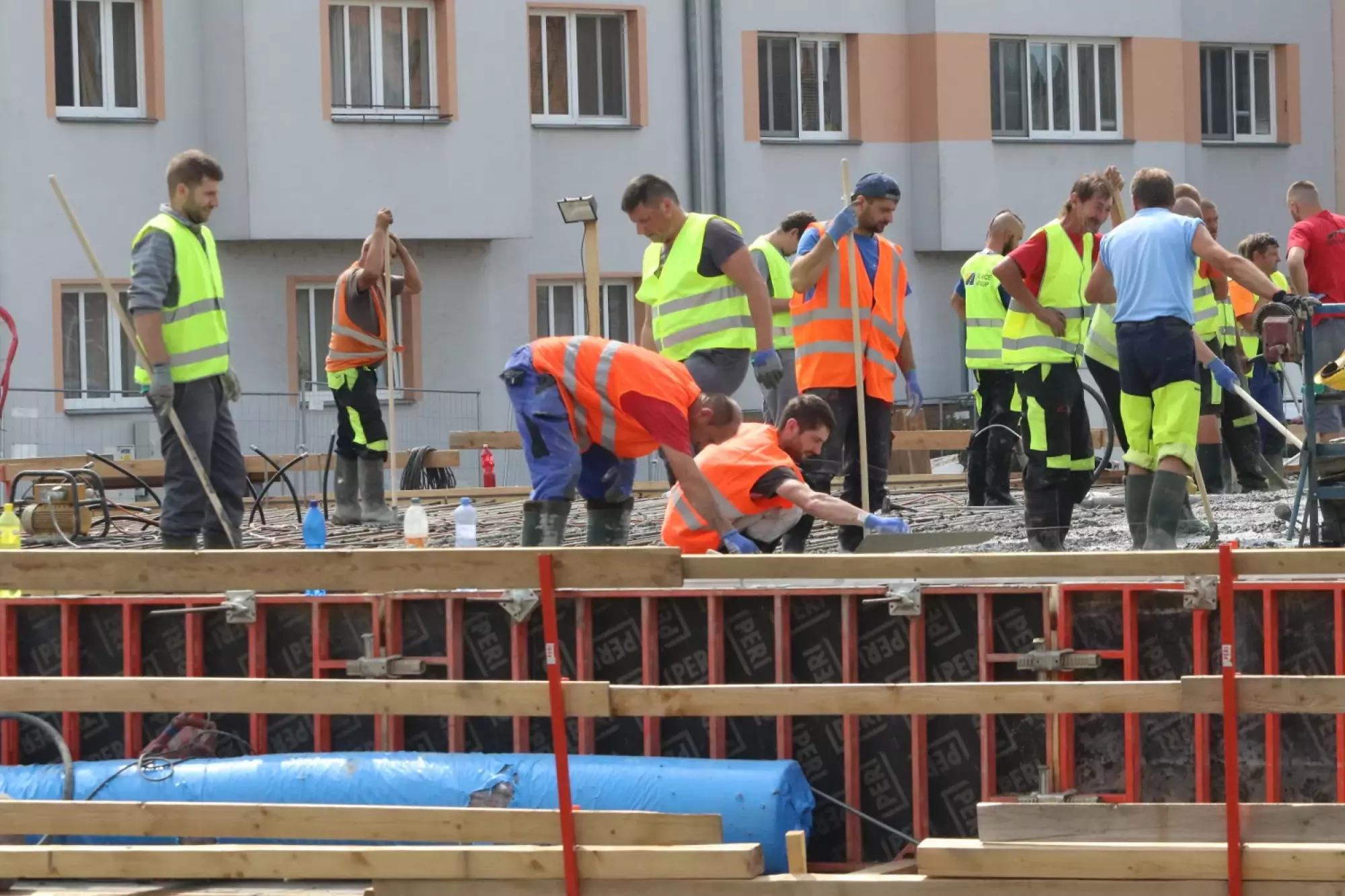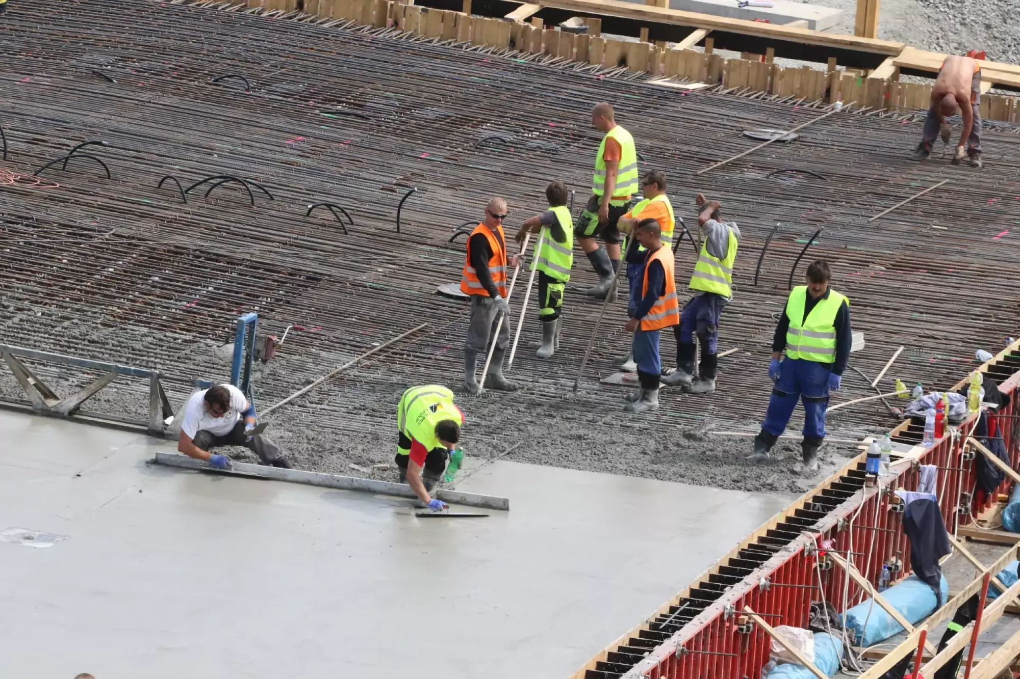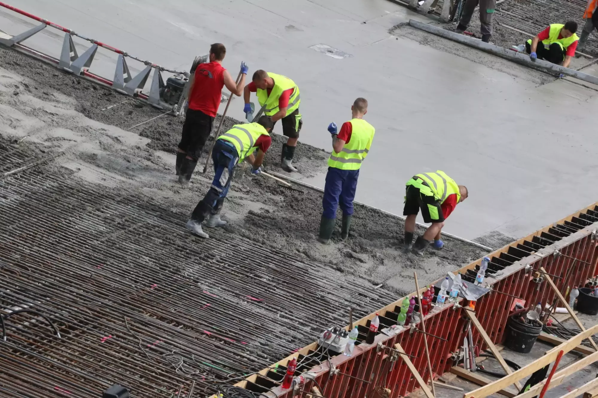 Nepřetržité betonování probíhá v těchto hodinách na stavbě mostu v Komenského ulici. Desítky dělníků začaly připravovat mimořádnou stavební akci už v noci ze čtvrtka na pátek, brzy ráno pak přivezly první domíchávače beton. Od šesti ráno se střídá jeden domíchávací vůz za druhým, aby mohly stovky kubických metrů betonu nepřetržitě natékat do připravené mostní konstrukce. Práce bude pokračovat zřejmě až do noci.
