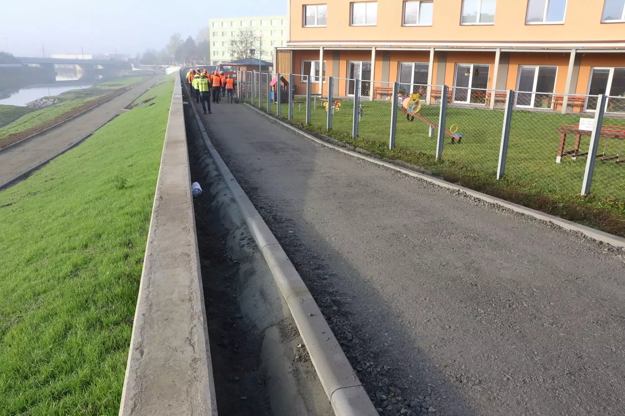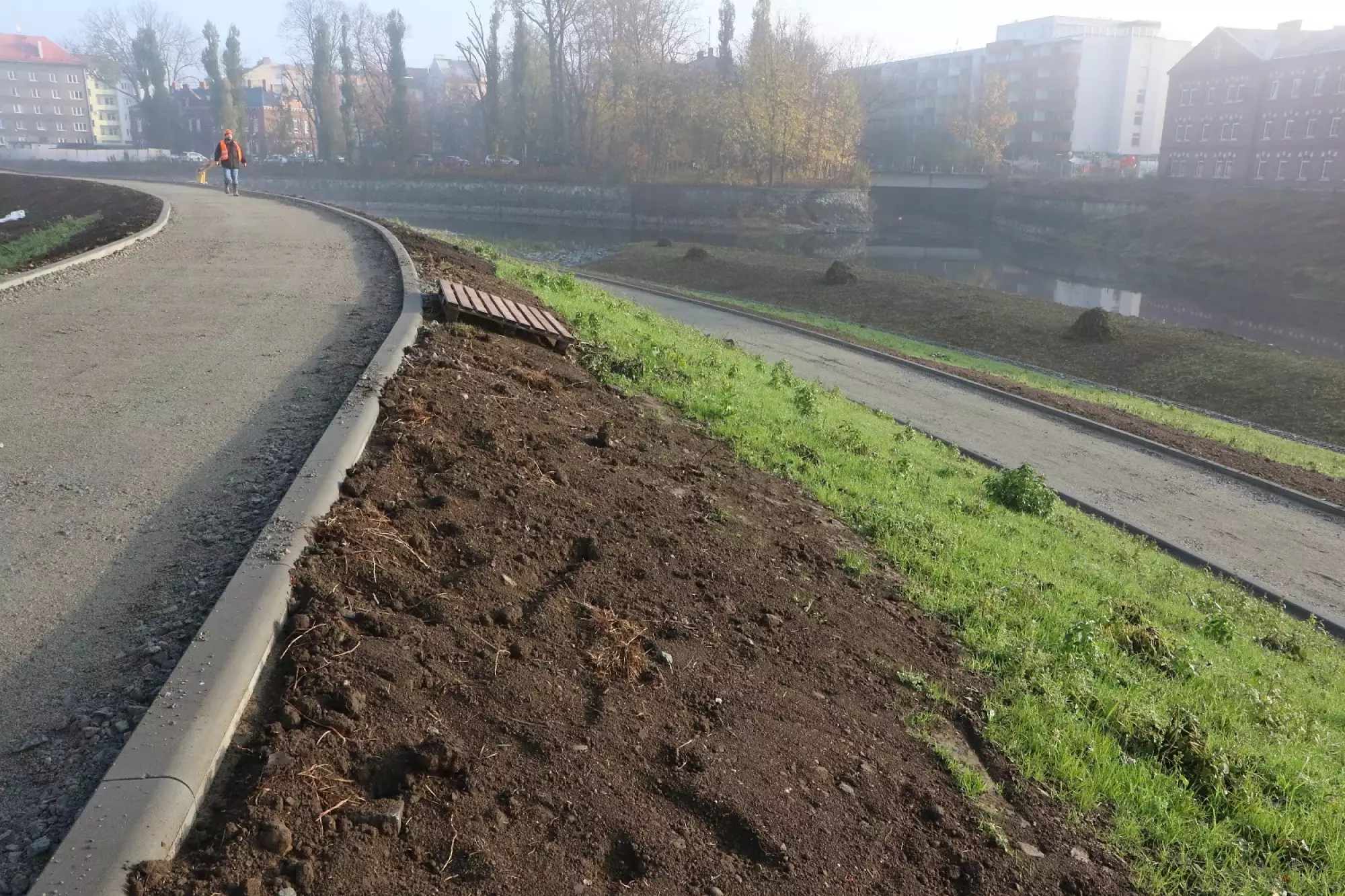 Během kontrolního dne zástupci vedení města a Povodí Moravy prošli téměř celou stavbu až k ulici Kosmonautů. Na pravém nábřeží řeky mezi mosty v ulicích Masarykova a Kosmonautů podél areálu vysokoškolských kolejí jsou už před dokončením nové komunikace, které mají sloužit jako cyklostezka, in-line stezka a také obslužná komunikace. S jejich kolaudací se počítá na jaro příštího roku. Tím bude značná část upraveného a revitalizovaného nábřeží vrácena do života města, navíc v podstatně vyšší kvalitě.