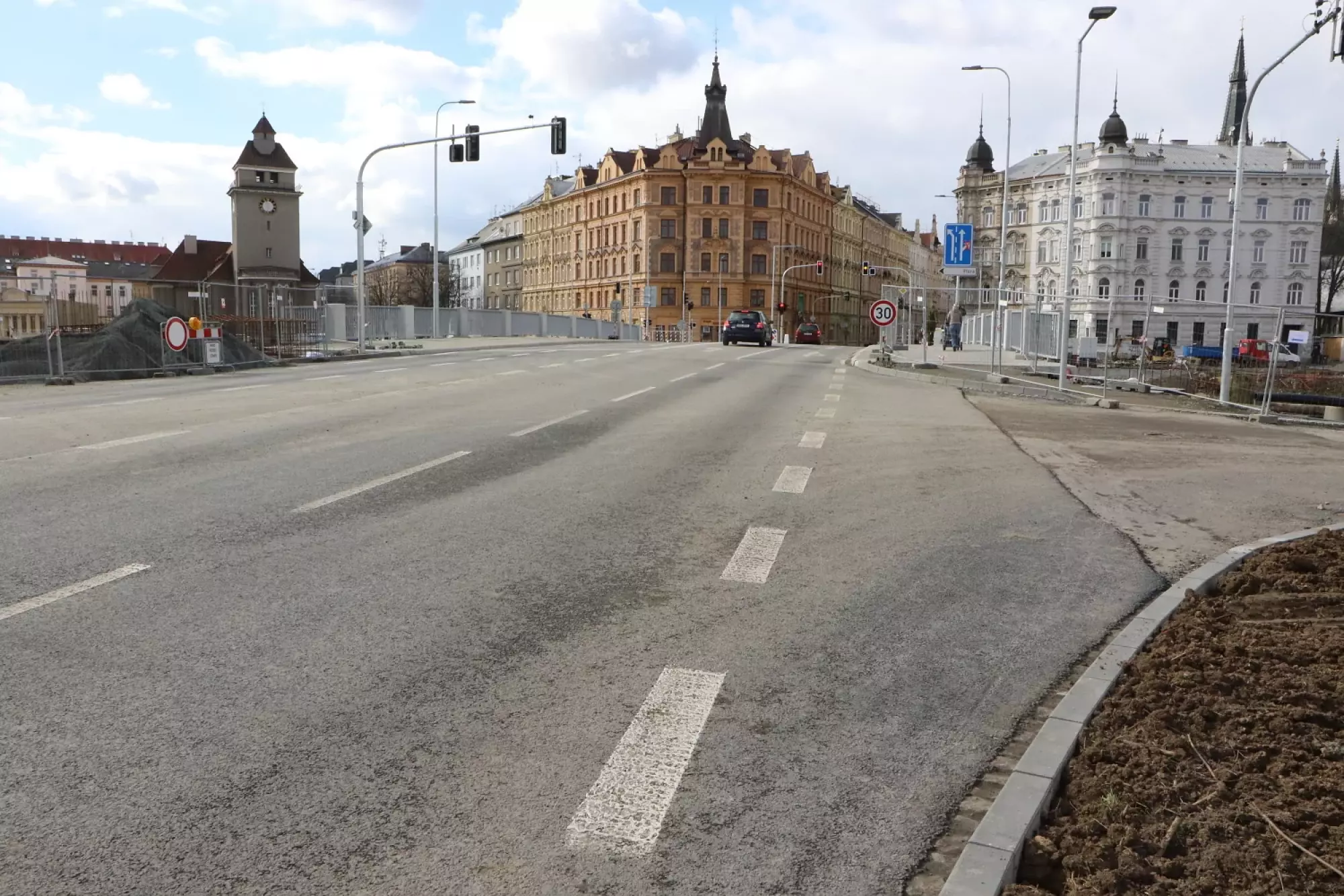 Kromě změny provozu, která vyplynula z otevření nového mostu, by si řidiči měli dávat pozor i na další úpravy. Po jednadvaceti měsících se totiž stala ulice Jiřího z Poděbrad opět jednosměrnou, při cestě od ulice Dobrovského už tedy řidiče zastaví značka zákaz vjezdu. Ve čtvrtek dopoledne raději tuto křižovatku hlídali policisté. Ve zjednosměrněné ulici bude opět možné i parkovat. Totéž by mělo platit i za Mlýnským potokem na nábřeží Přemyslovců.